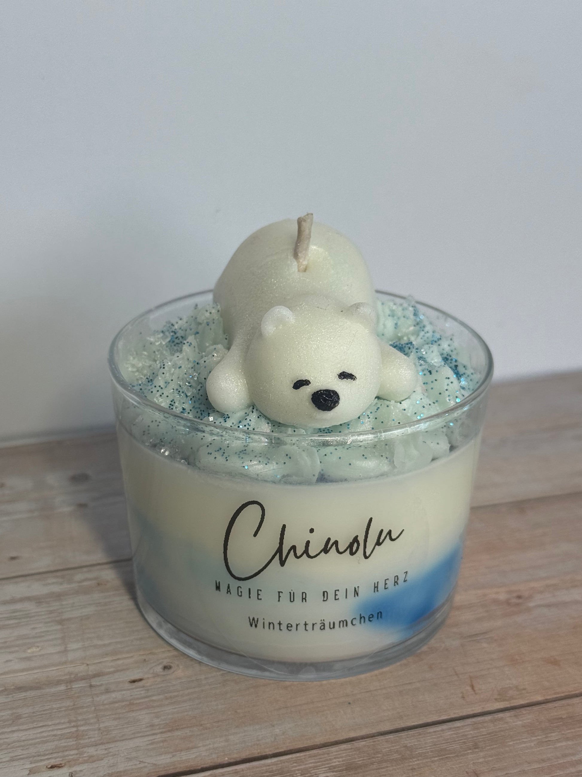 Ihr kleiner Eisbär ruht auf glitzerndem Schnee und erinnert daran, dass wahre Magie oft in den leisen Momenten liegt.